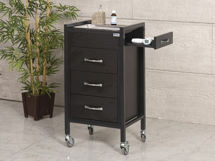 Cihaz ve malzeme koymak için ahşap çekmeceli olarak tasarlanmıştır.